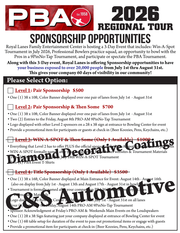 Align your business with the Professional Bowlers Association (PBA)—a respected name in professional sports that brings credibility and excitement to the event.