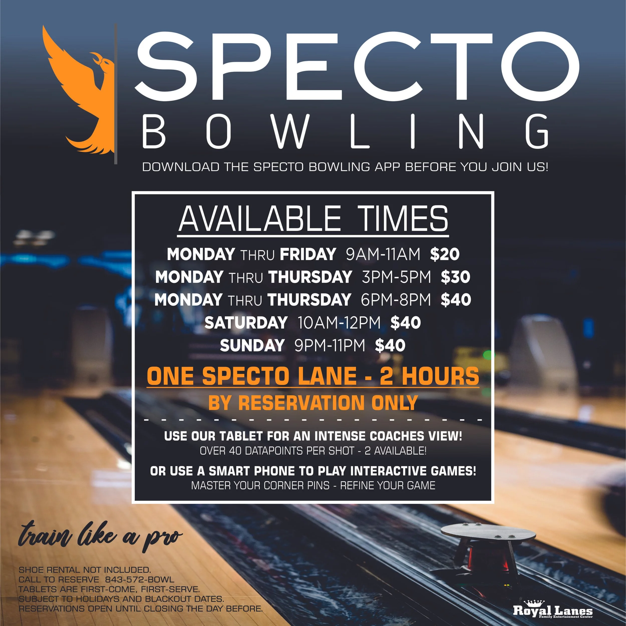 We are currently reservation only for Specto!